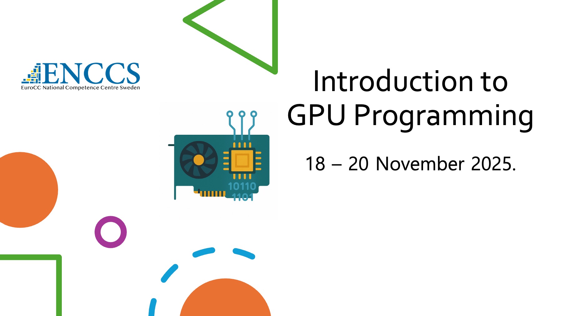 We are pleased to share that ENCCS is organizing a three-day online workshop titled GPU Programming: When, Why and How? from 25 to 27 November 2025. This training is designed for researchers, engineers, and developers who already work with CPU-based applications and want to understand how to accelerate them using modern GPU-computing techniques. This workshop is a follow-up event to the webinar Introduction to GPU Programming announced last week.