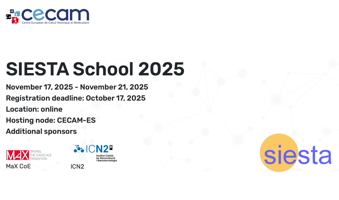 The event aims to equip attendees - including graduate students, postdocs, and practitioners—with effective use of SIESTA, emphasizing aspects like parallelization, advanced solvers, and pre-/post-processing tools. Interested participants can apply via the CECAM event page, with a deadline of 17 October 2025.