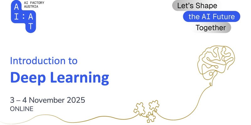 Interested in exploring deep learning but lacking experience? Join the Introduction to Deep Learning course hosted by AI:AT - AI Factory Austria and Austrian Scientific Computing (ASC, TU Wien). It's an online event via Zoom on 3 and 4 November 2025.