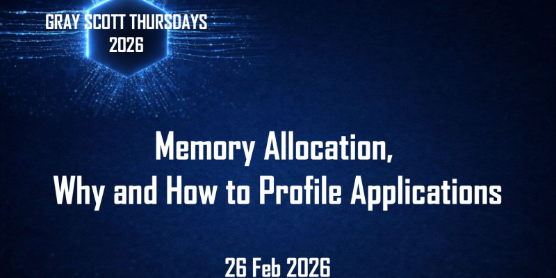 Gray Scott’s Thursday webinars continue, with this week's session focusing on memory allocation, application profiling, and their importance. Join this Thursday, 26 February 2026.