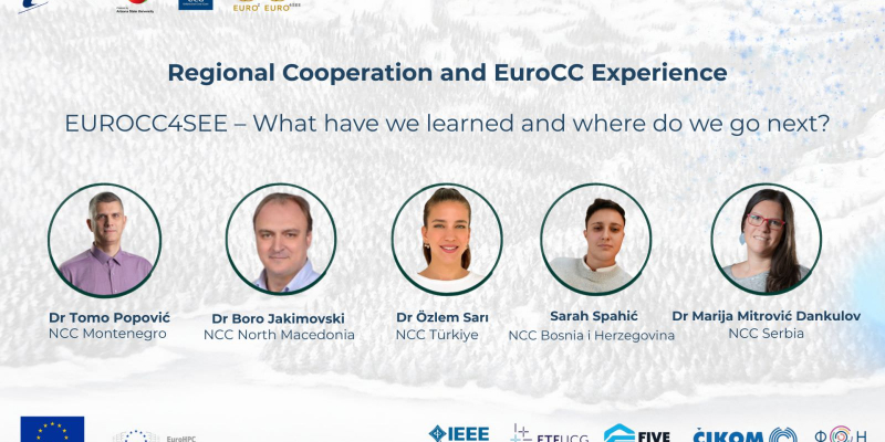 The EuroCC4SEE project (European Competence Centers for Southeast Europe) is a EuroHPC-funded program designed to build and enhance National Competence Centers (NCCs) specializing in high-performance computing (HPC), artificial intelligence (AI), and high-performance data analytics (HPDA) throughout Southeastern Europe. It is a regional extension and continuation of the EuroCC 2 initiative. Co-financed by the EuroHPC Joint Undertaking and the EU's Digital Europe program, the project runs from 1 April 2024, to 31 December 2025, focusing specifically on Southeast European countries such as Serbia, Montenegro, North Macedonia, Bosnia and Herzegovina, and Turkey.