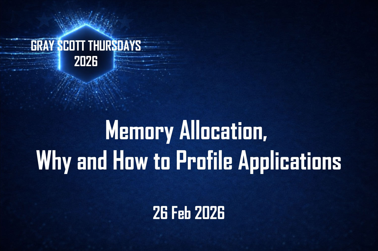 Gray Scott’s Thursday webinars continue, with this week's session focusing on memory allocation, application profiling, and their importance. Join this Thursday, 26 February 2026.
