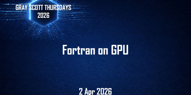 A new session on modern Fortran programming for CPU architectures will be part of the Gray Scott Thursdays webinar series, scheduled for 12 March 2026.