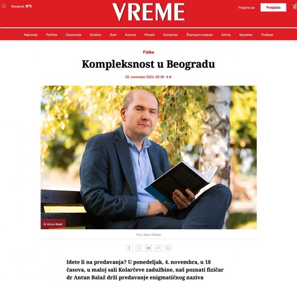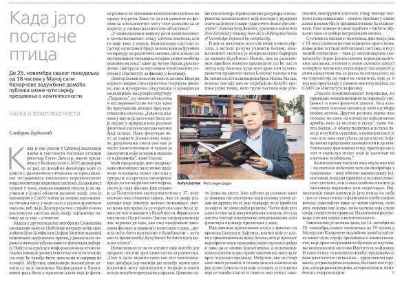 In the past month, HPC Serbia has also been highlighted in the daily newspaper Politika and the weekly magazine Vreme as part of the announcement for a series of lectures on complex systems held at the Ilija M. Kolarac Endowment in Belgrade. A common theme among these lectures is the use of HPC resources offered by HPC Serbia.